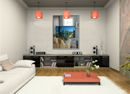 TV hinter Glas, Bildschirm hinter Glas, Bildschirm hinter Spiegel,Möbelspiegel TV