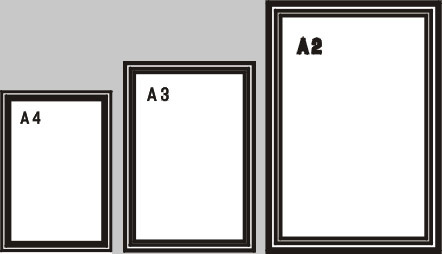 1 x DIN A4 ca. 320 x 440 mm 1 x DIN A3 ca. 440 x 580 mm 1 x DIN A2 ca. 520 x 750 mm |