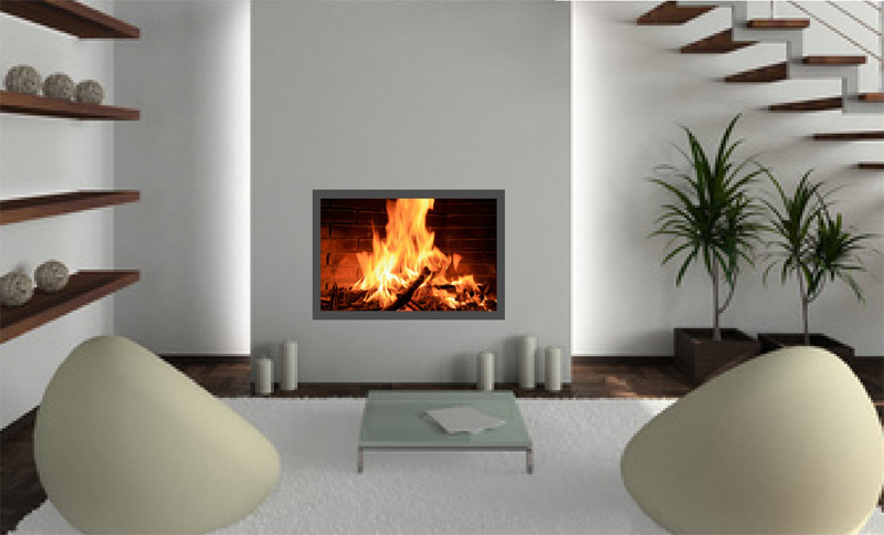 Einbaudisplay mit verblüffend echtem Feuerspiel durch TFT mit Endlos-Video Kaminfeuer